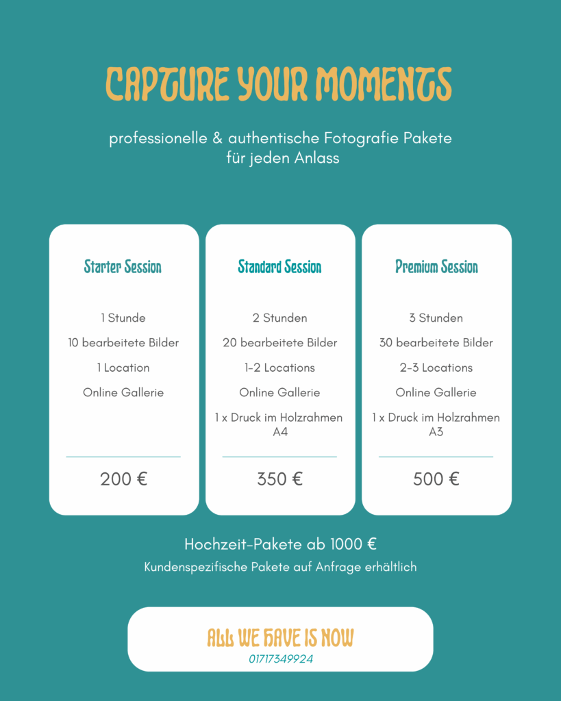 Meine Leidenschaft gilt den ungefilterten, ehrlichen Augenblicken. Dabei arbeite ich behutsam und respektvoll, damit du dich wohlfühlst und deine natürliche Schönheit zum Vorschein kommt.