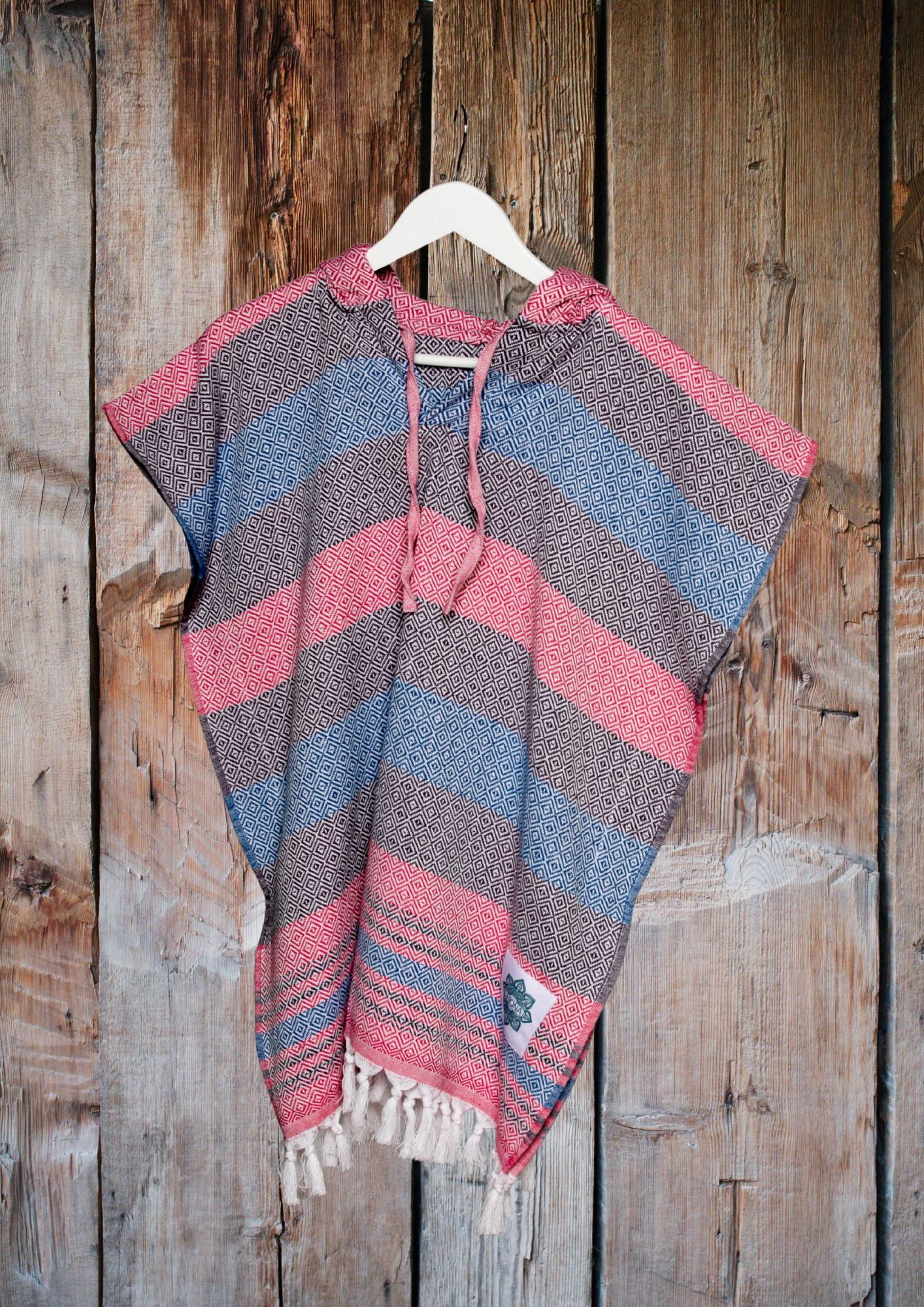Handgewebter Poncho aus Hammamstoff für Kinder (ab ca. 100 cm Körpergröße)
